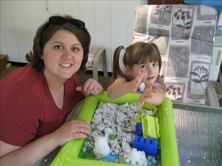 The girls play with new 'Moon Sand' Sarah got for her b-day