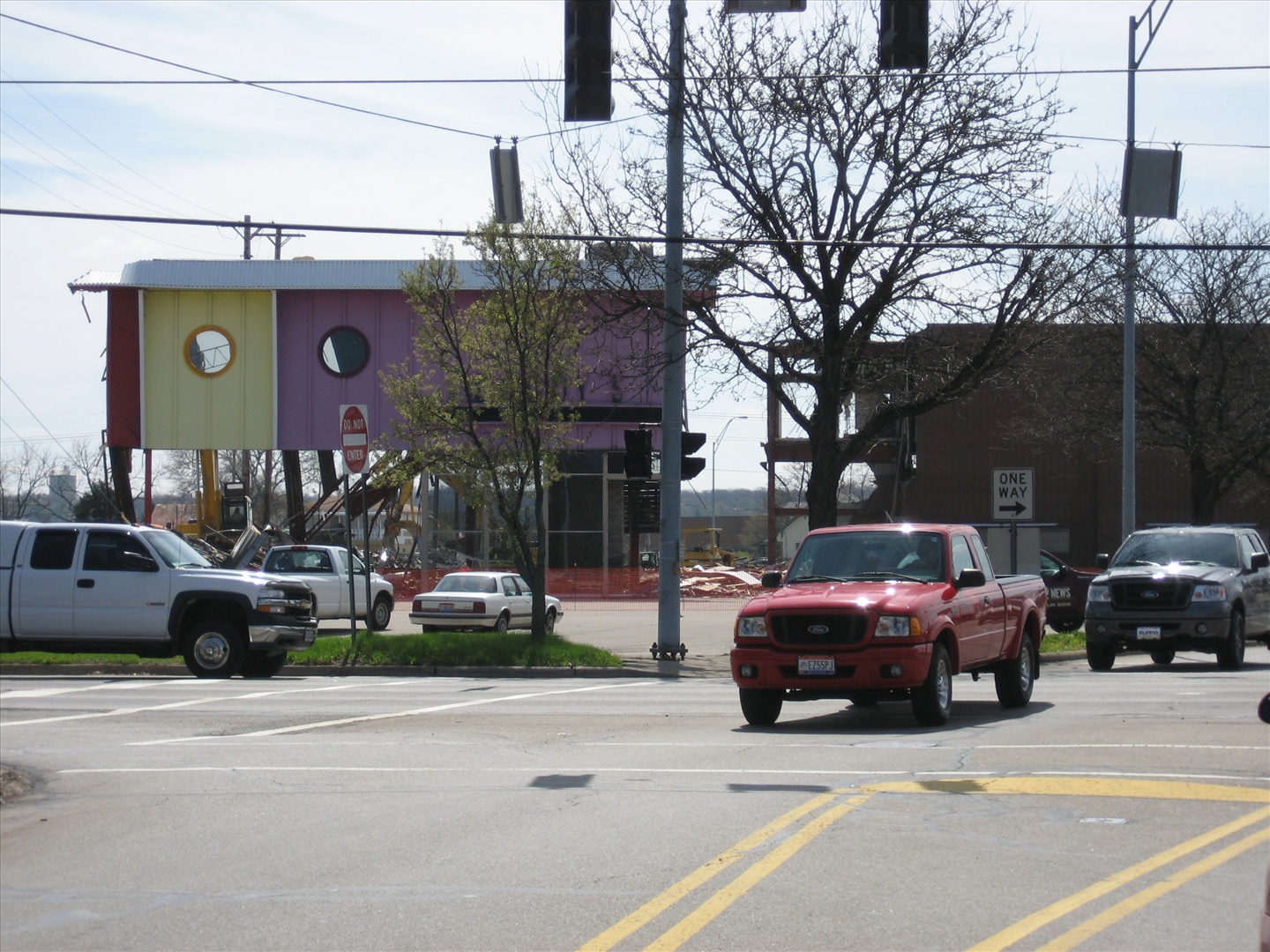 Woody's restaurant (colorful building on left) is still standing