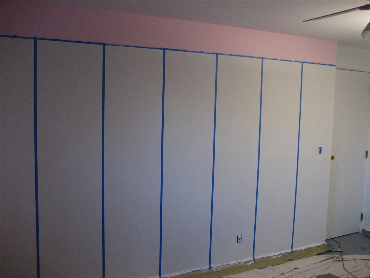The vertical tape is in place on this wall