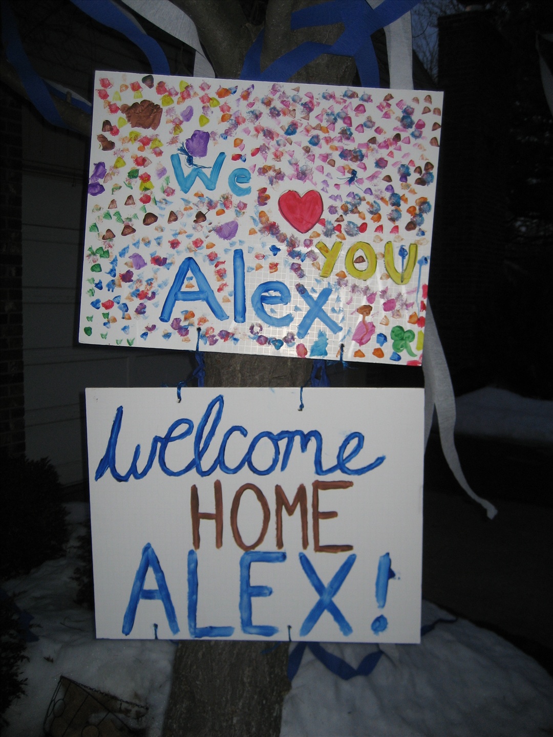 We arrive at home to fanfair Daddy made the bottom sign - the girls and Grandma made the top one