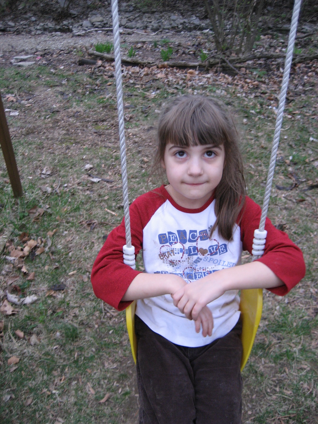 Sarah likes to play on the swing set