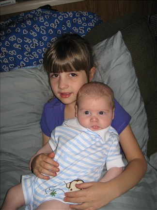 Sarah likes to hold her little brother