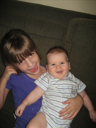 The girls and Deanna play 'ladder ball' at Aunt Brenda's house