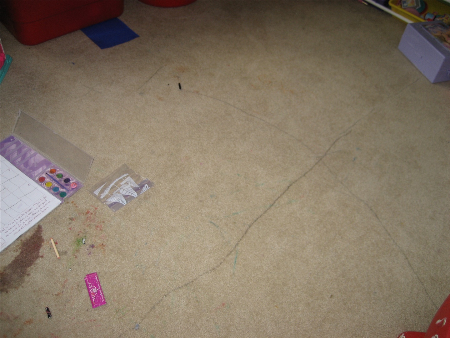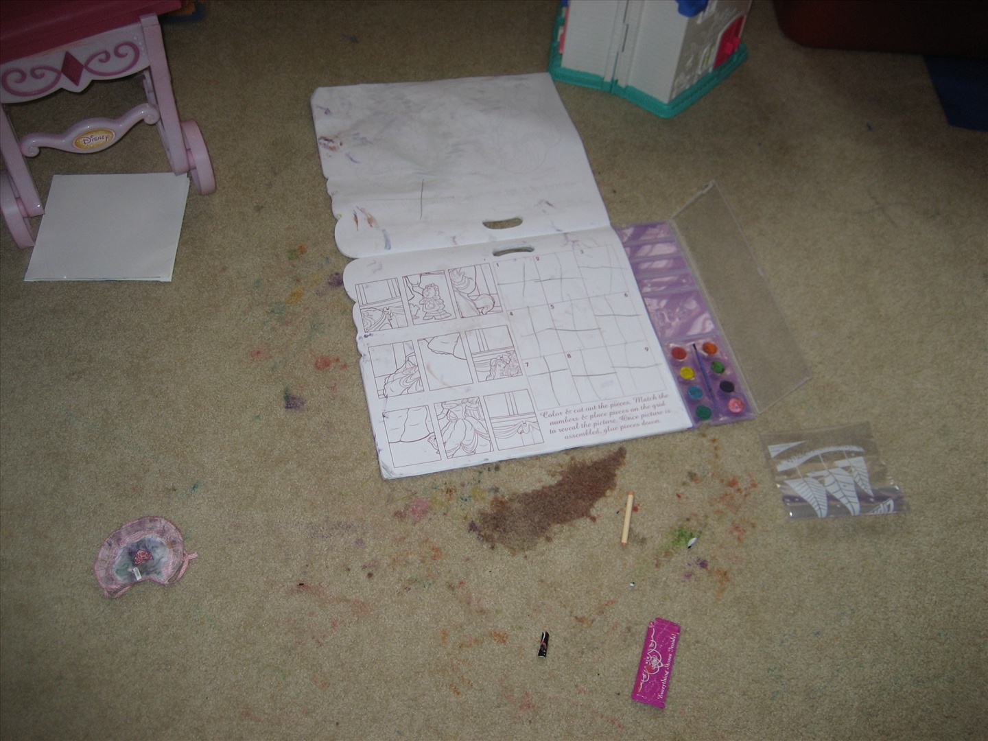 Char made a mess of the carpet in the playroom!