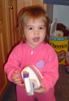 Sarah with newly cut bangs