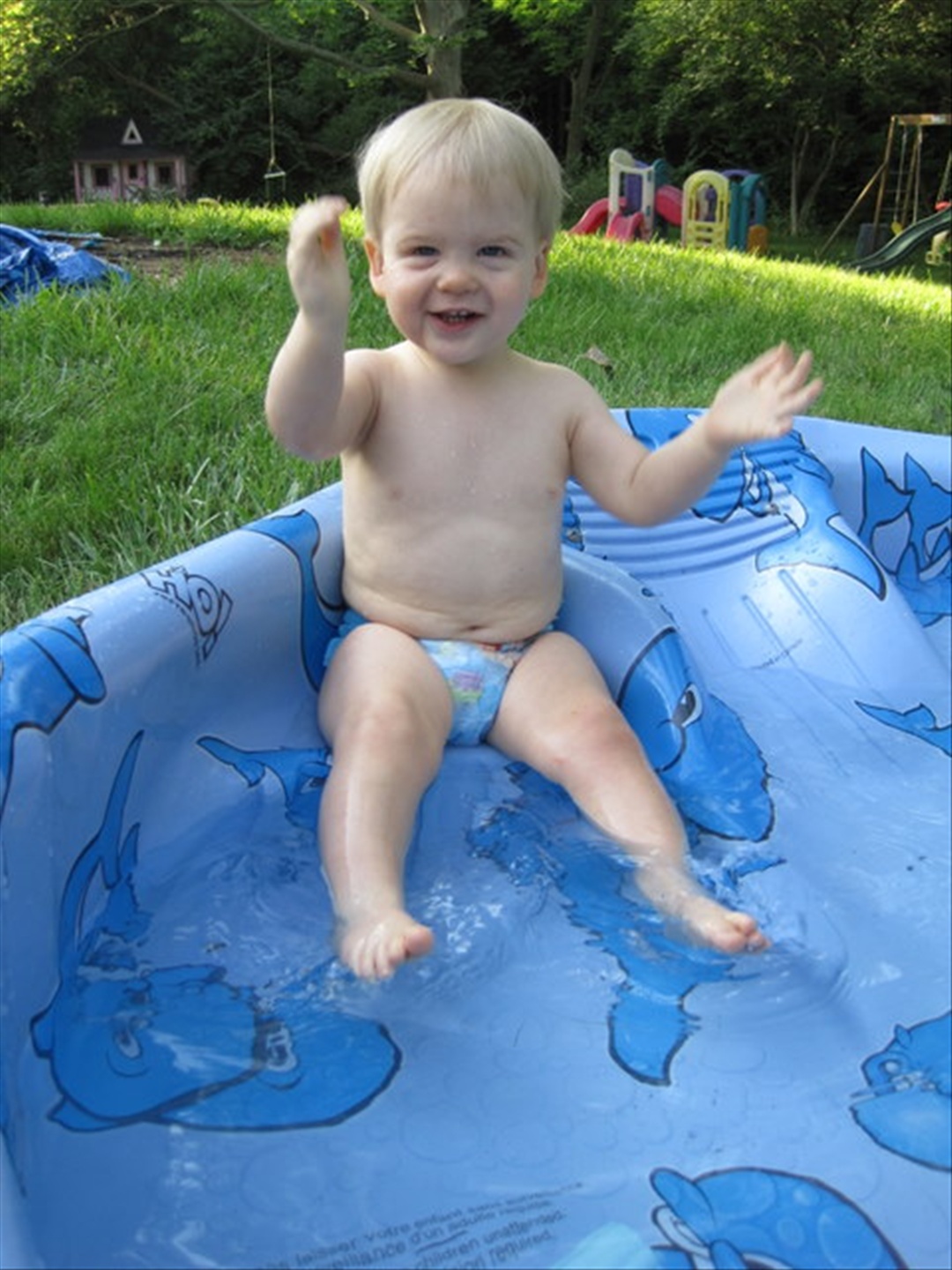 Alex with deer in headlights look at the pool