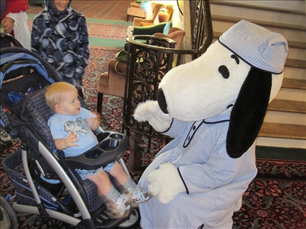 Alex loves all dogs, even ones named Snoopy wearing pajamas