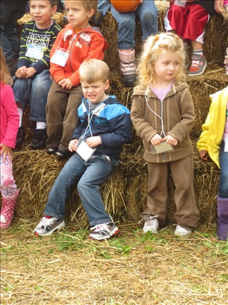 The kids line up for an obstacle course before they get their pumpkins