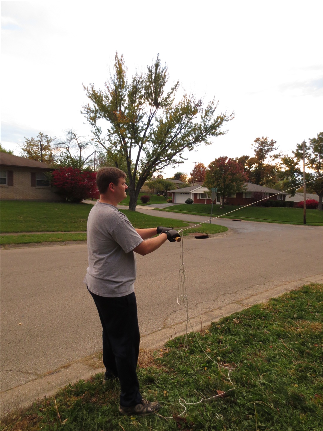 A long rope tied to the tree to help guide it away from the house