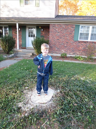 Alex stands where the pine did earlier this day