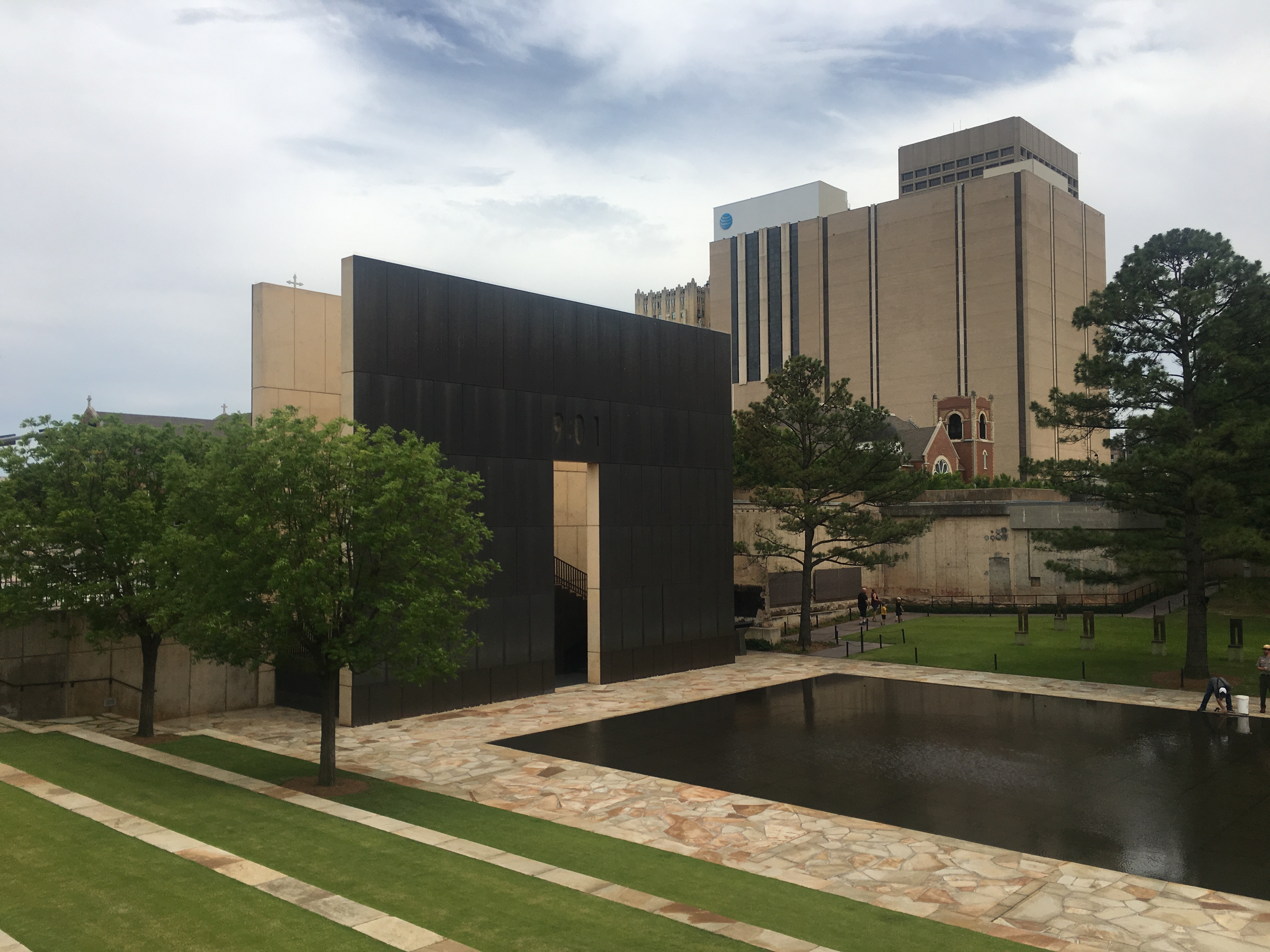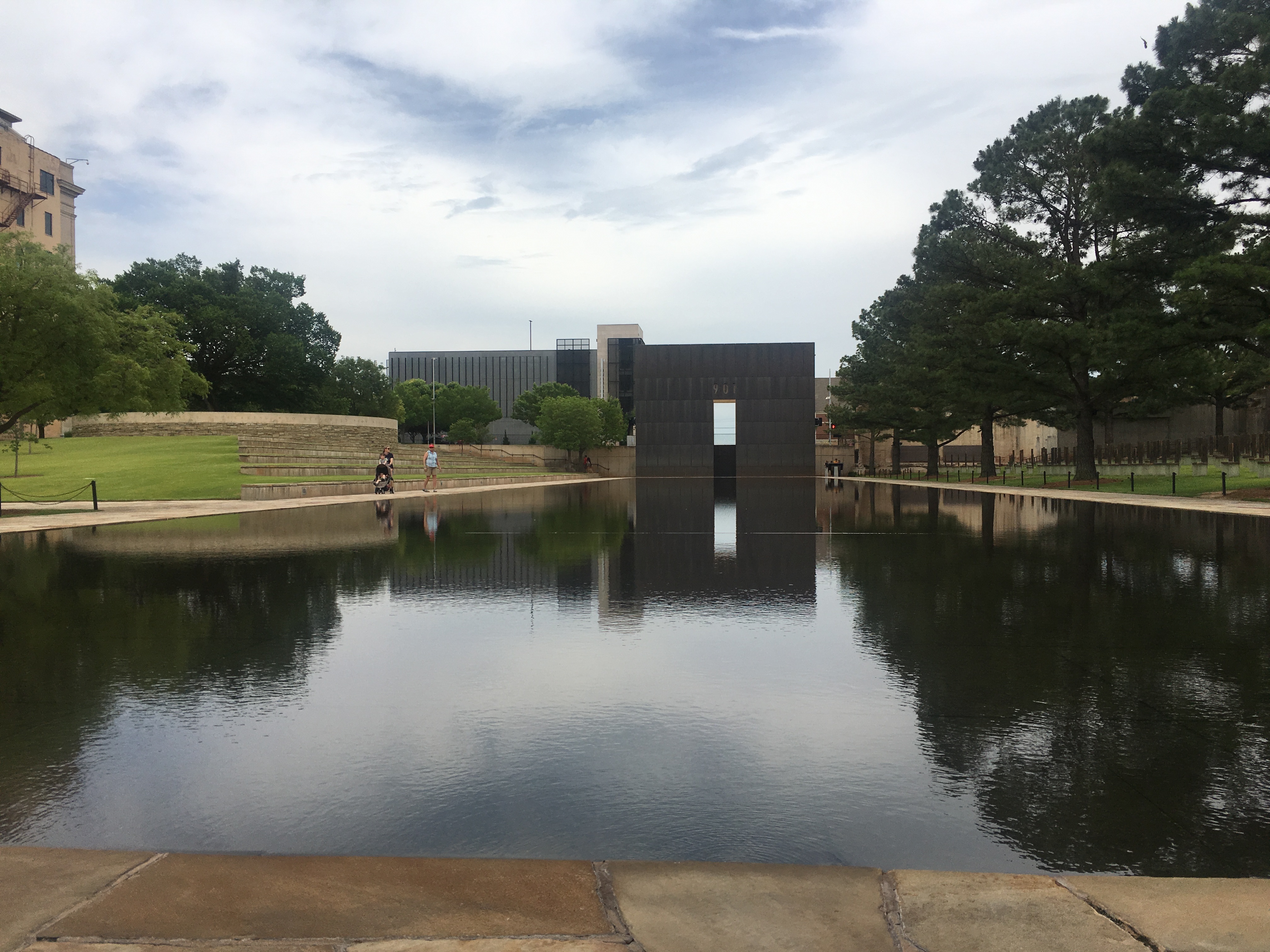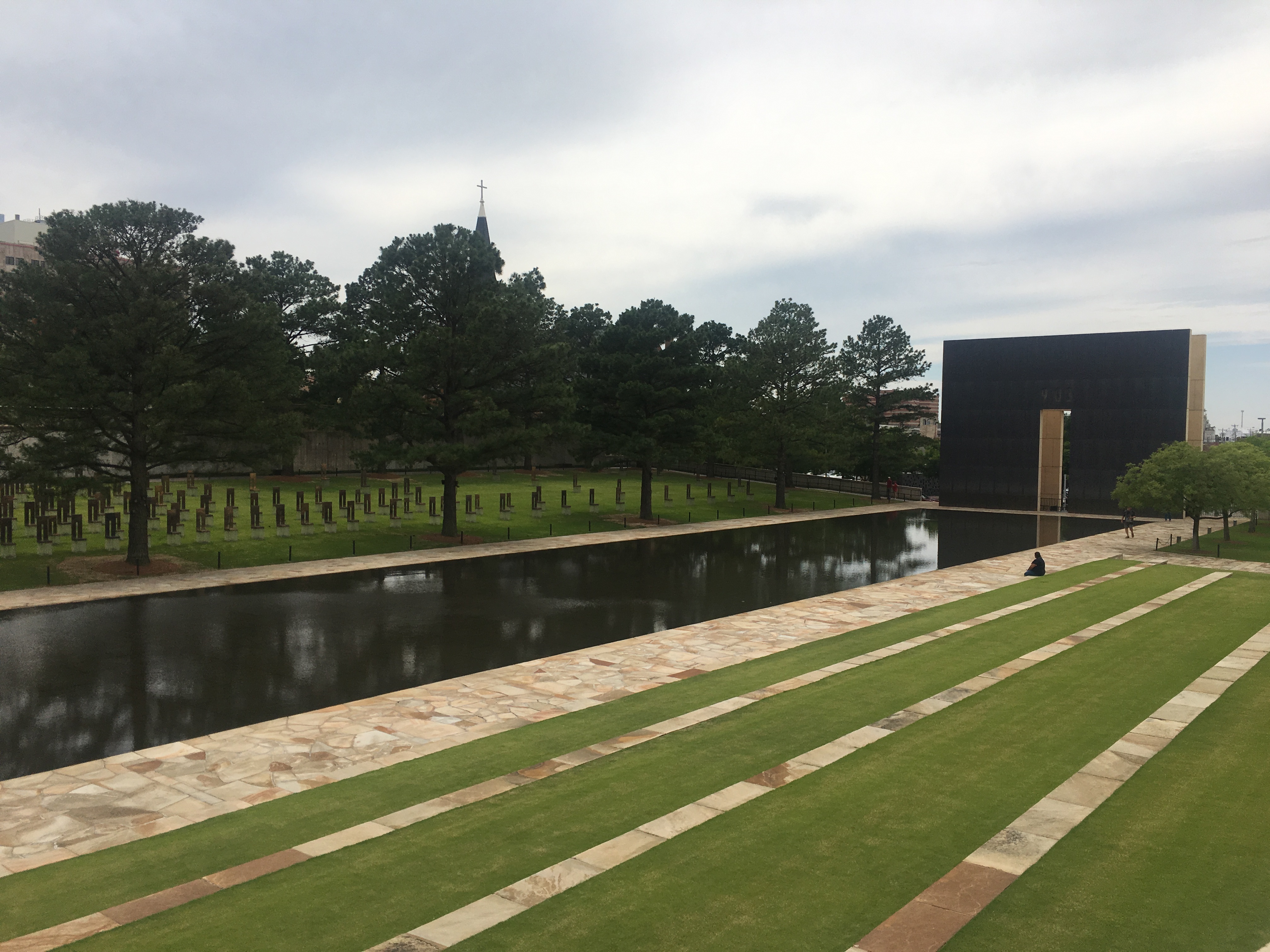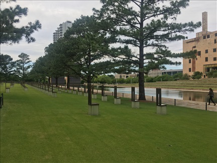 A close-up view of the chairs that represent the 168 people who died in the bombing
